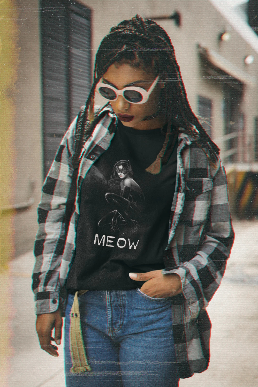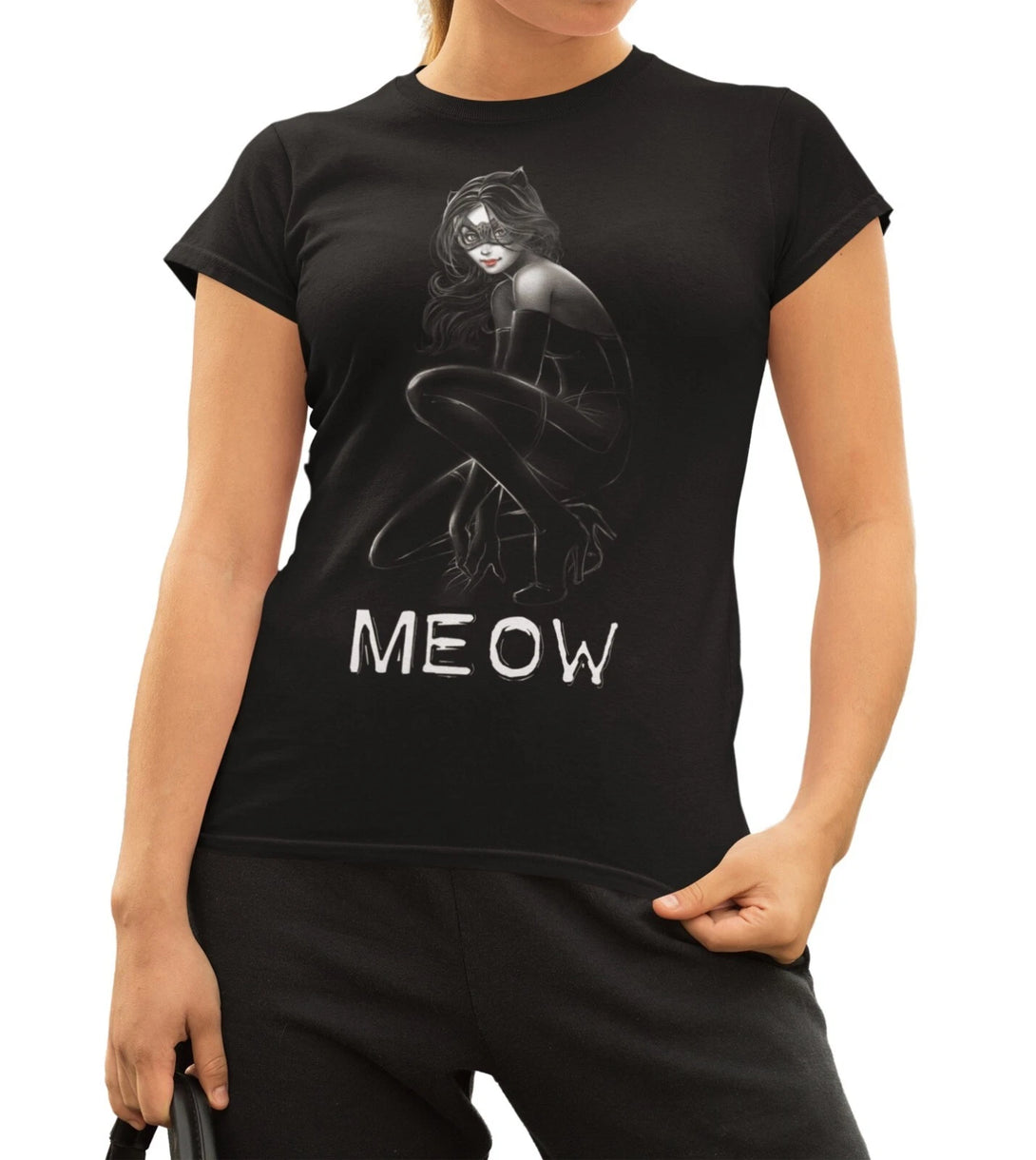 DC Comics Catwoman Text Meow 01 Official Women's T-Shirt (Black)