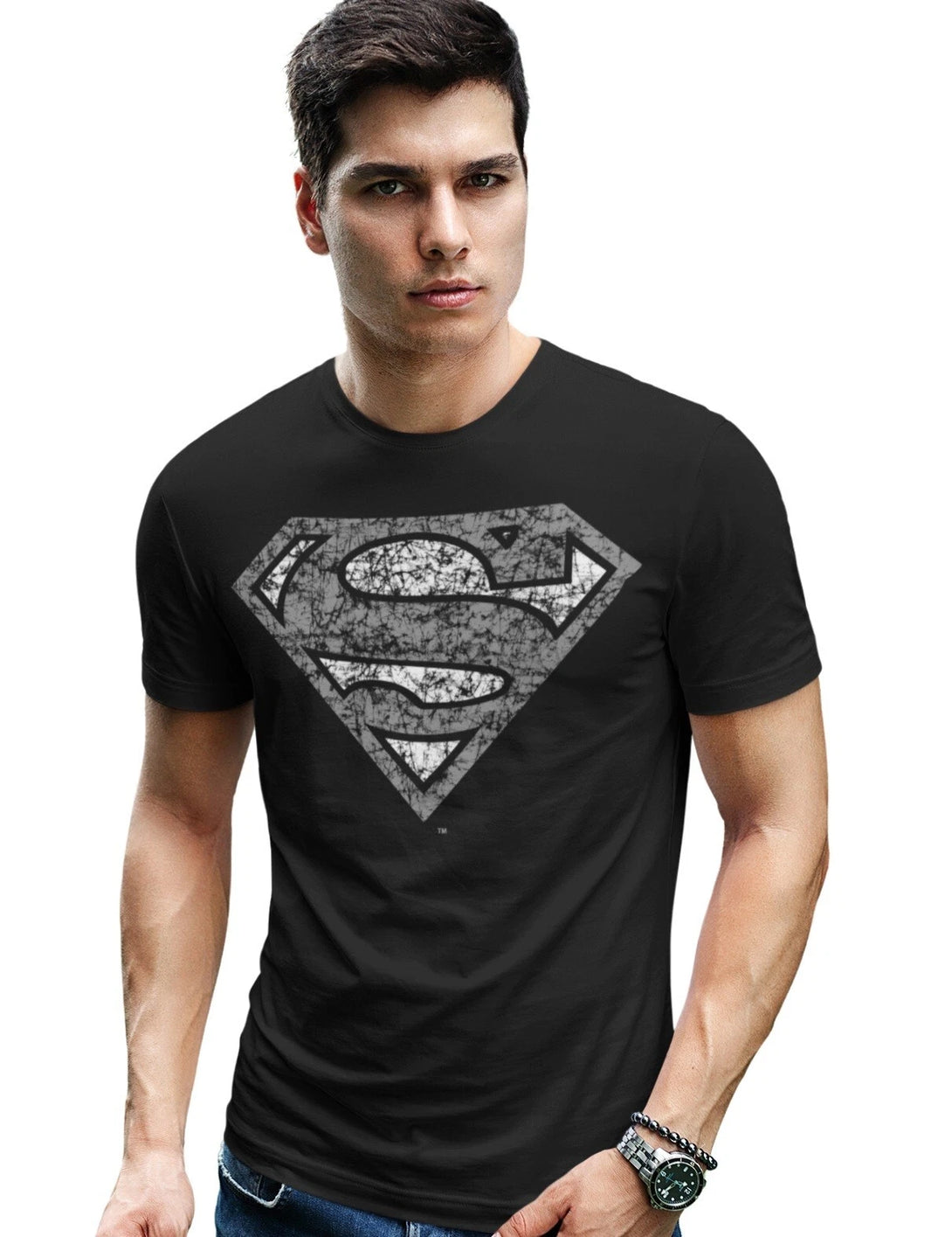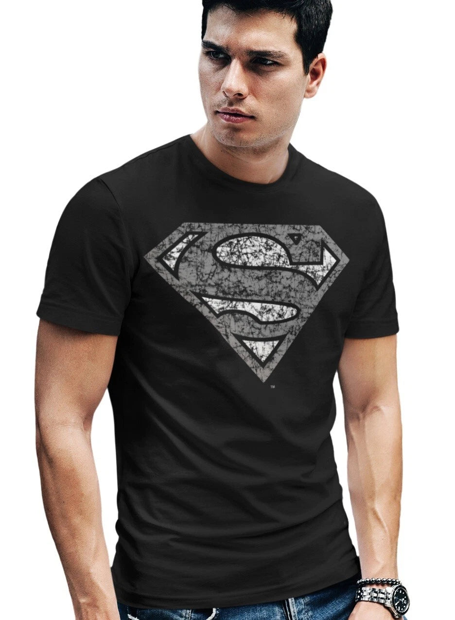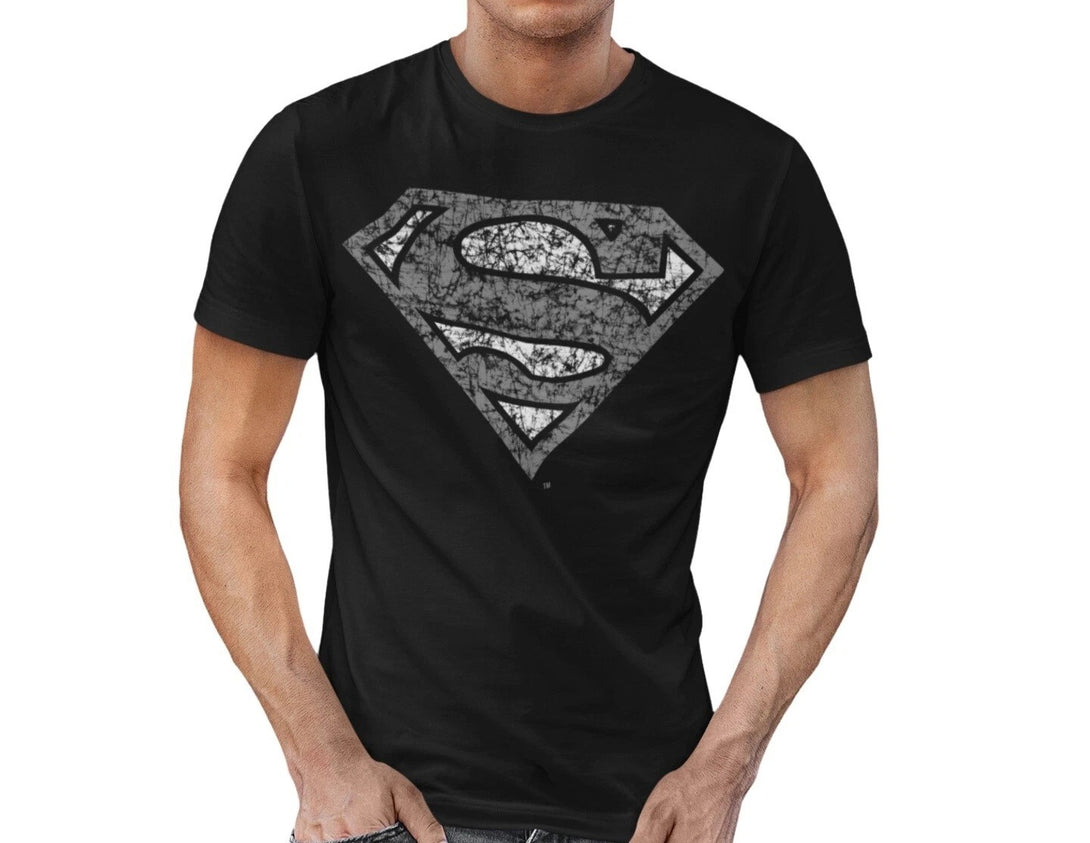 DC Comics Superman Logo Distressed Official Men's T-shirt (Black)