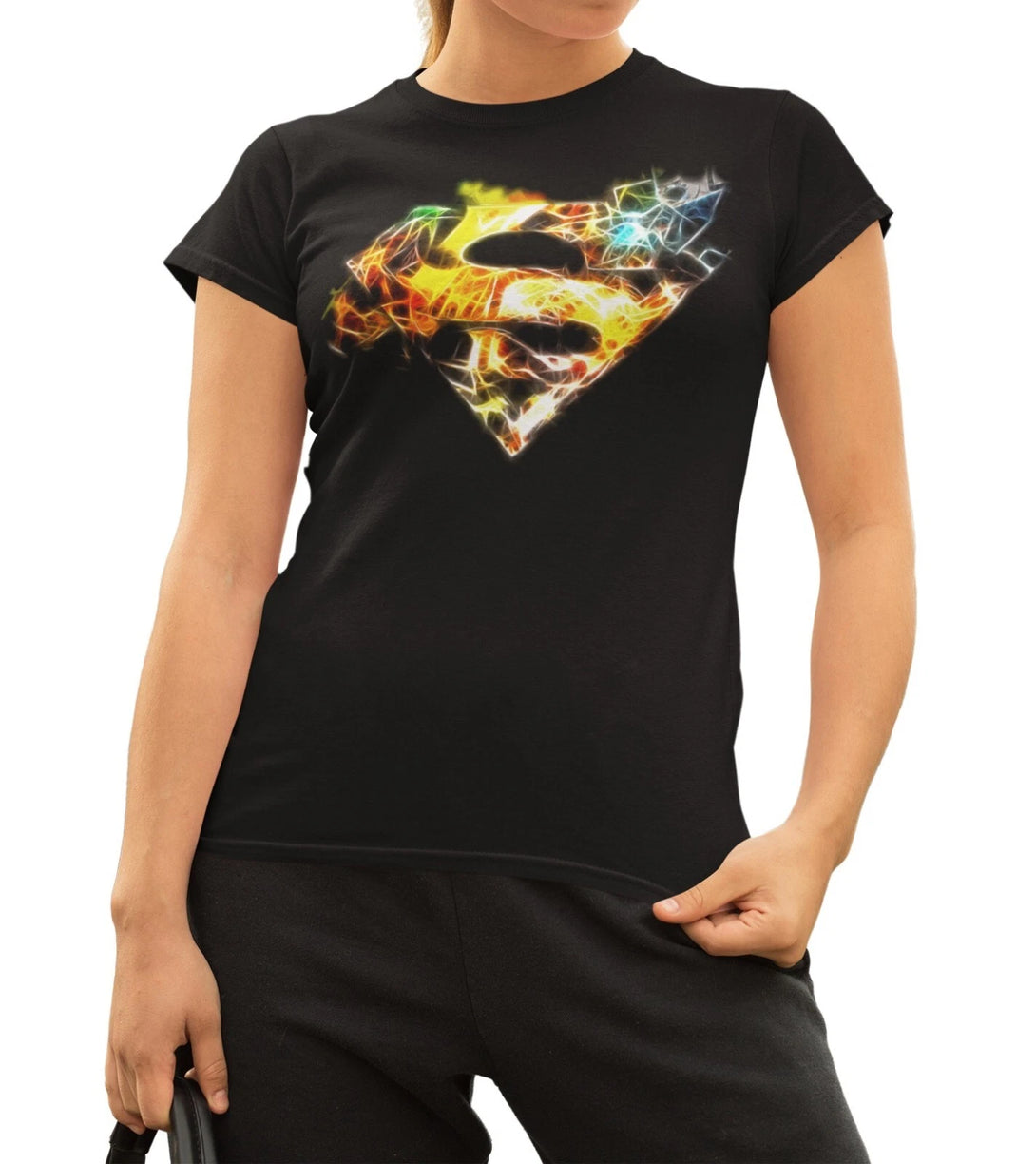 DC Comics Superman Logo Saturated Official Women's T-shirt (Black)