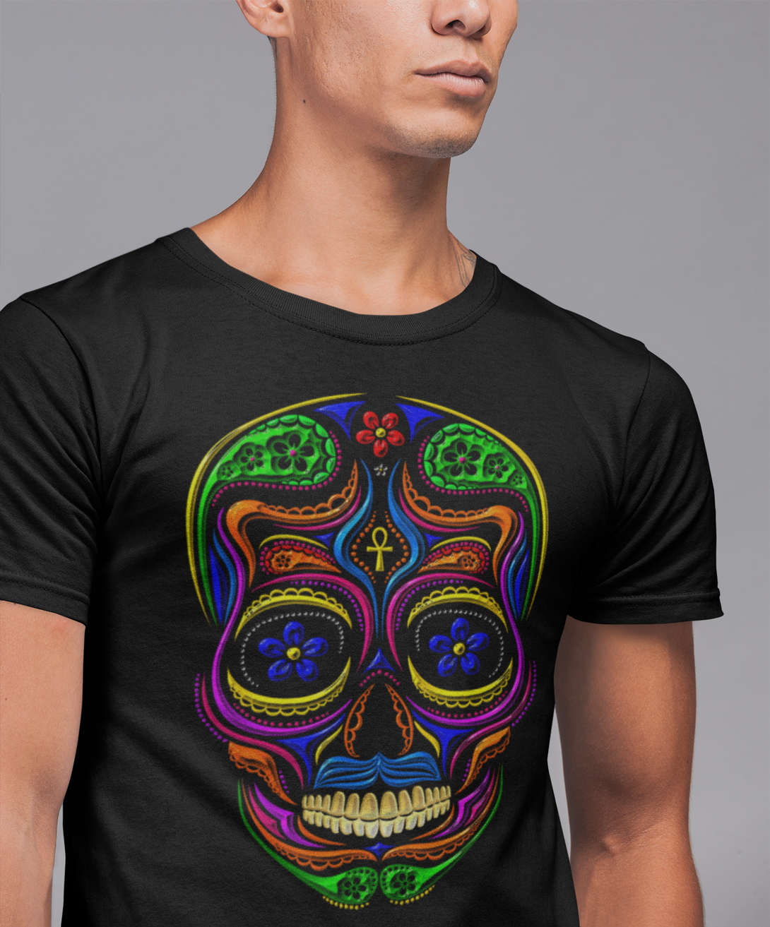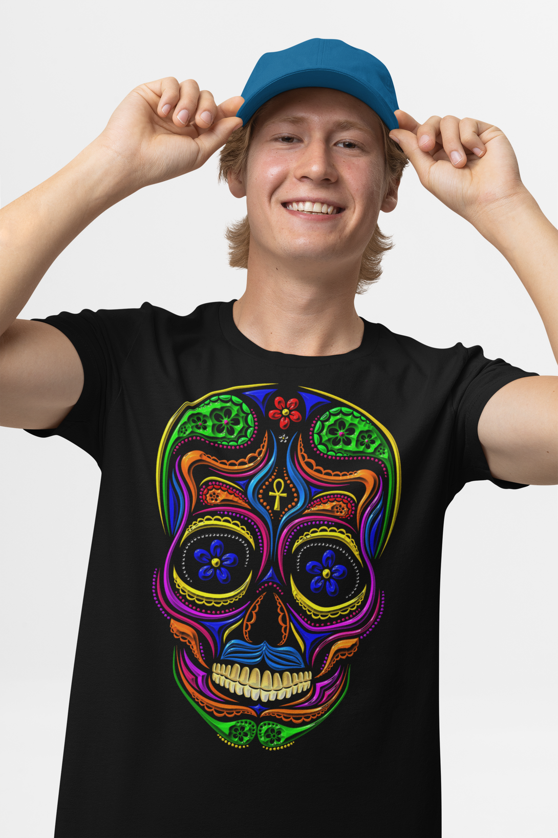 Halloween Mexican Sugar Skull Funny Skeleton Men's T-shirt